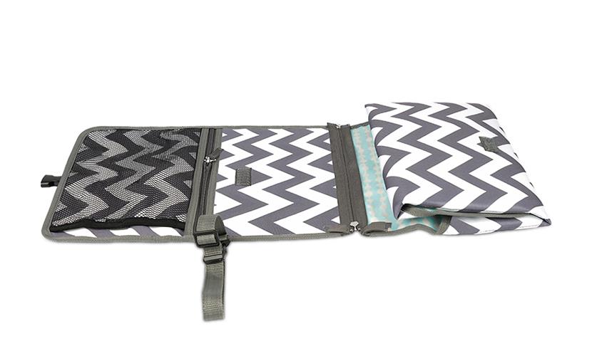 產品采用可拆卸設計,使用時可根據需要拆分產品。產品頂部附有網料口袋和拉鏈口袋,可存放嬰兒護理用品及大人的隨身用品,一墊多用,輕松出行。